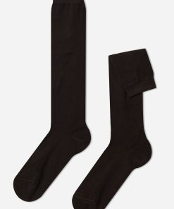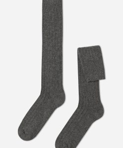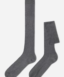 Calzedonia Men’s Ribbed Wool And Cashmere Long Socks | 042 – Medium Gray Melange | Men’s Socks