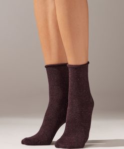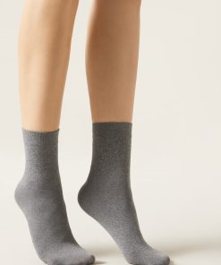 Calzedonia Women’s Cashmere Short Socks With Glitter | 194d – Grigio Chiaro Glitter Cashmere