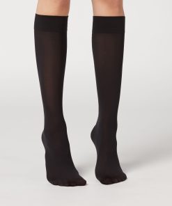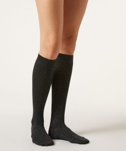 Calzedonia Women’s Socks Diamond Patterned Eco Knee-highs | 5068 – Eco Black Vertical Argyle