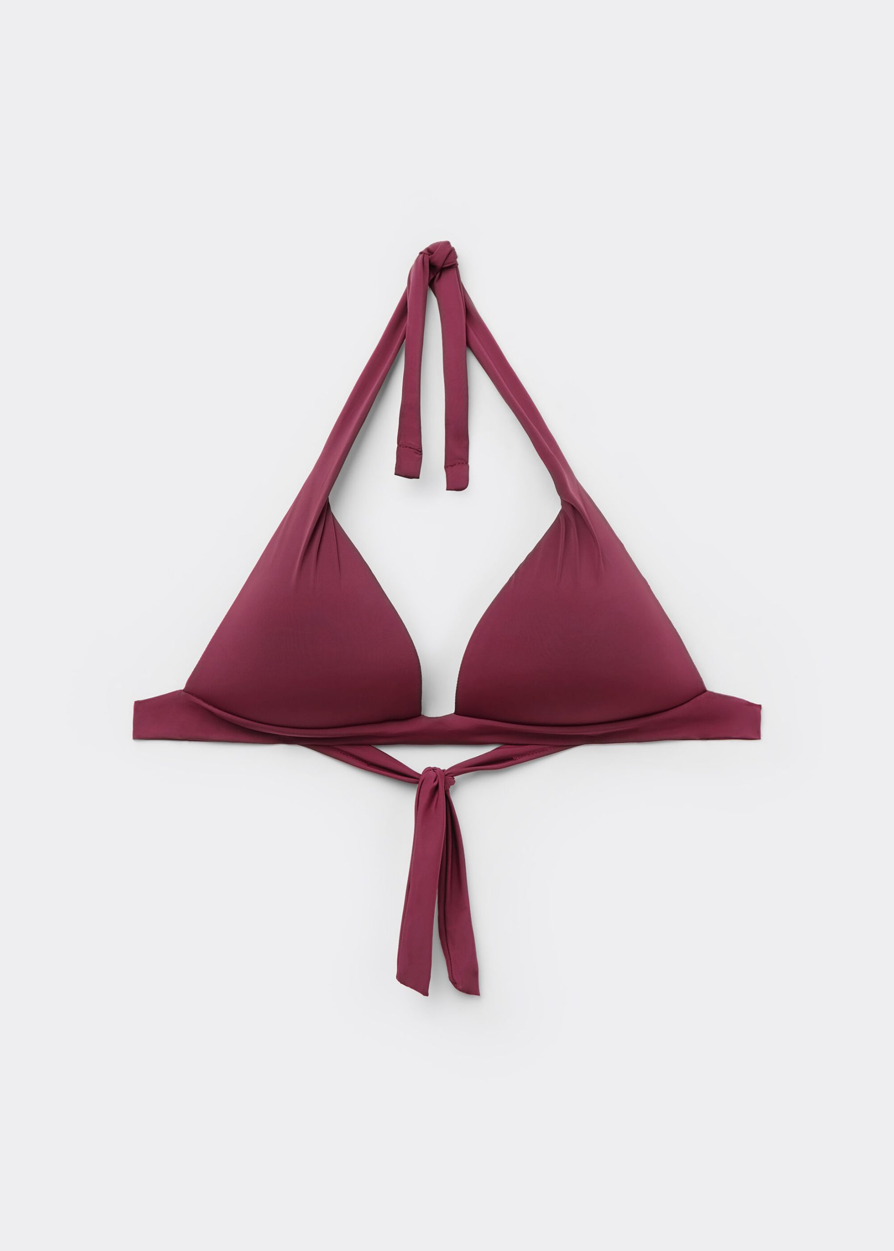 Our Indonesia halter neck triangle bikini top offers the perfect combination of style and comfort. Designed with graduated padded cups, this top adds natural-looking volume to enhance and shape the bust for a flattering silhouette. Made from exceptionally soft fabric, the tie-back bikini top feels light and breathable on the skin, making it ideal for long days by the pool or at the beach. Graduated padding creates a push-up effect, enhancing and lifting the bust for a flattering, sculpted silhouette. The adjustable shoulder straps feature eyelets at the ends, allowing for versatile styling; hook them onto the back band for a classic look or tie them behind the neck for a chic halter effect. With a tie back bikini top closure, this design ensures a secure and adjustable fit, adapting to your shape effortlessly. Thoughtfully crafted for both sun lounging and active swimming, this bikini top combines premium materials with a stylish and versatile design, making it a standout addition to your swimwear collection.