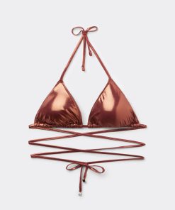 Calzedonia Women’s Bikini Tops Triangle Swimsuit Top Metallic Skin | 026e – Metallic Natural Almond Brown