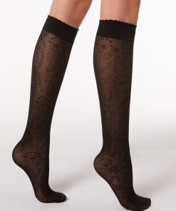 Calzedonia Women’s Socks Knee Highs In Floral Patterned Mesh | 4583 – Fiori Nero