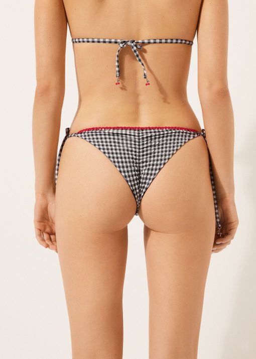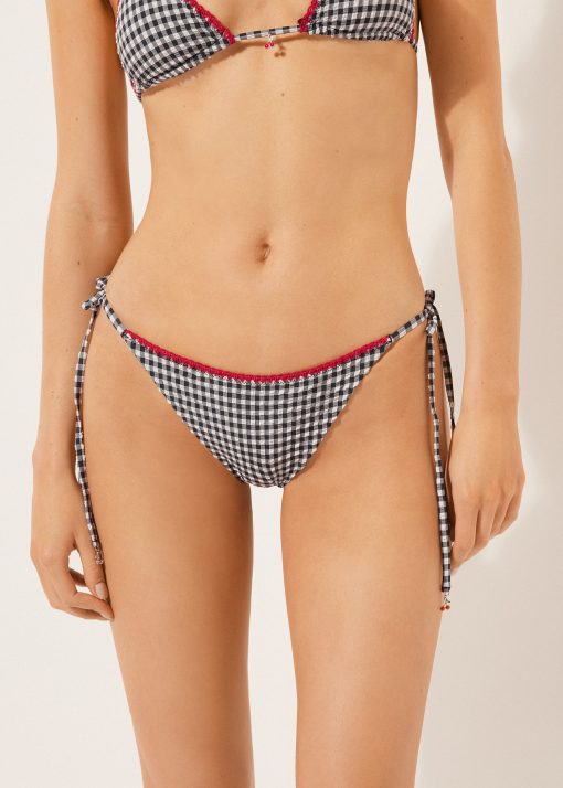 Calzedonia Women’s Swimwear And Cover-ups Brazilian String Swimsuit Bottoms Cherry Vichy | 117e – Patterned Vichy And Cherry Red