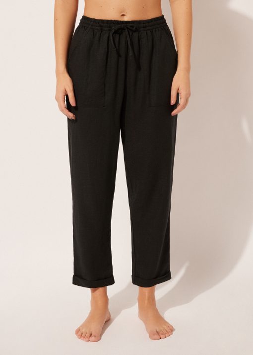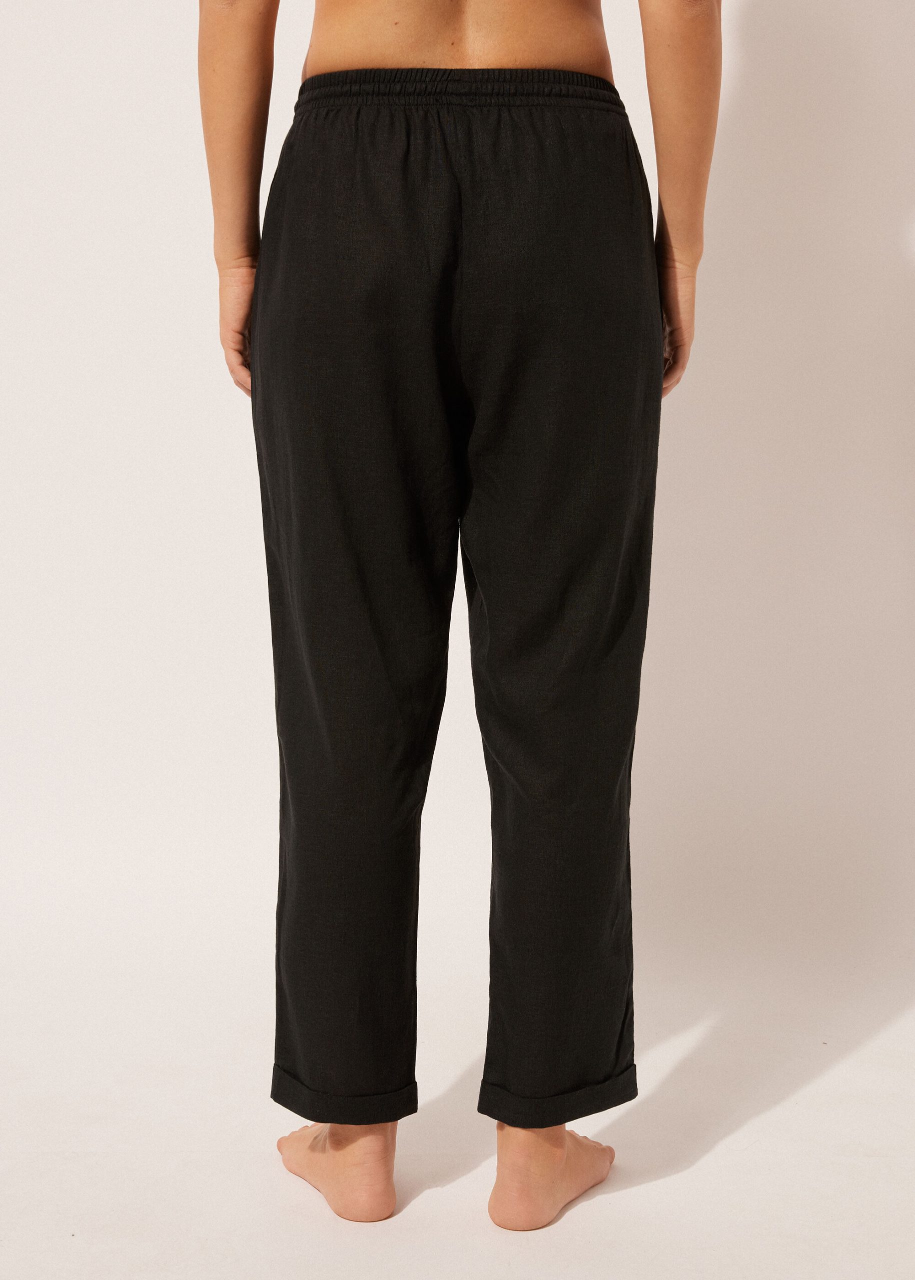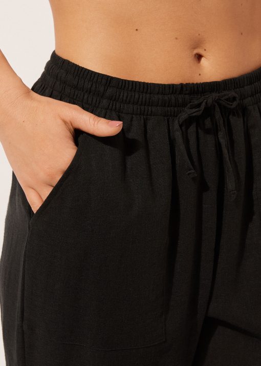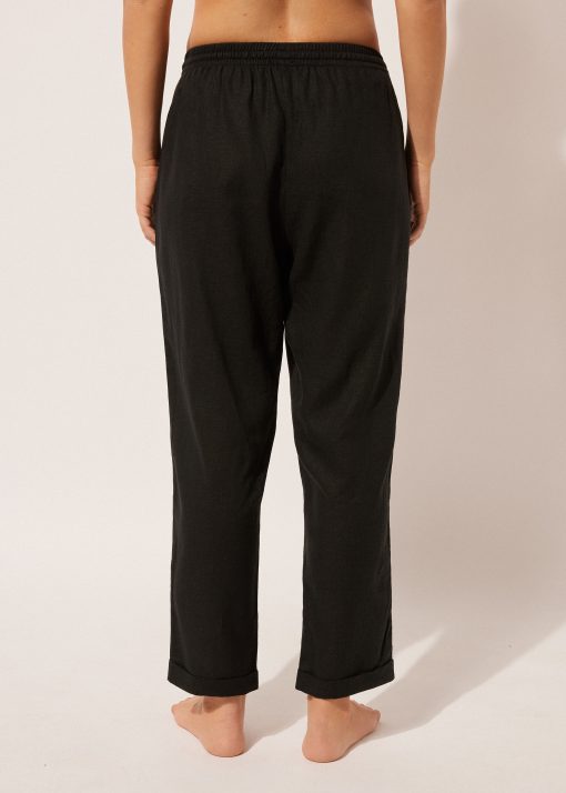 Calzedonia Women’s Swimwear And Cover-ups Linen And Viscose Pants | 894c – Black