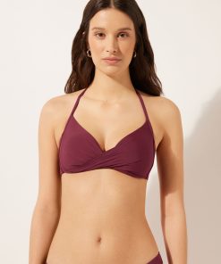 Calzedonia Women’s Bikini Tops Triangle Swimsuit Top Crinkle Twist | 114e – Crinkle Royal Blue Laced